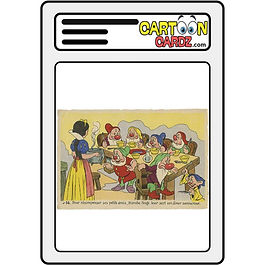 The 1940 Alfo Kunstdruck Snow White cards are a rare and visually striking set of collectible prints or trading cards produced in Germany by the publisher Alfo Kunstdruck. These items were released a few years after the 1937 premiere of Walt Disney’s Snow White and the Seven Dwarfs, and are among the earliest examples of Disney-themed collectibles in Europe. Typically issued as postcard-sized prints or small-format lithographic cards. The cards are high-quality color lithographs with detailed scenes from the film. Rich colors and finely printed—"Kunstdruck" means "art print" in German, indicating premium print quality. Characters include Snow White, the Evil Queen, the Seven Dwarfs, the Prince, the Magic Mirror, and iconic forest animals. The card backs were usually blank or printed with basic information (in German); some versions may include captions or numbers for collecting.
