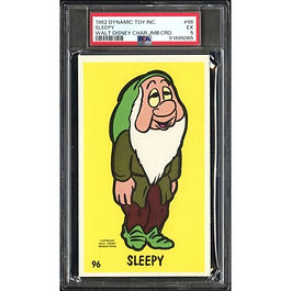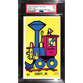 In 1962, Dynamic Toy Inc. issued multiple card sets including Walt Disney characters, The Flintstones, Barbie and Popeye. The “Jumbo” cards measure approximately 3-1/4” x 5-1/2”. Card numbers 71–105 are allocated exclusively for the Disney series. Other numbers cover different themes like Flintstones, Popeye, Barbie, and Ripley’s Believe It or Not in adjacent number ranges.